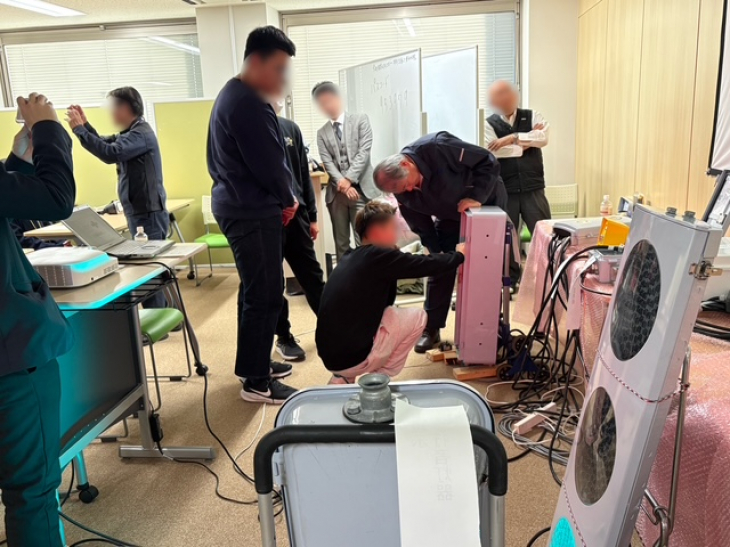 制御機における現示秒数の設定作業や、歩行者用信号機の情報を「音声」「振動」「画面表示」で知らせるアプリケーション「信GO!」を用いた押しボタン操作を体験していただきました。